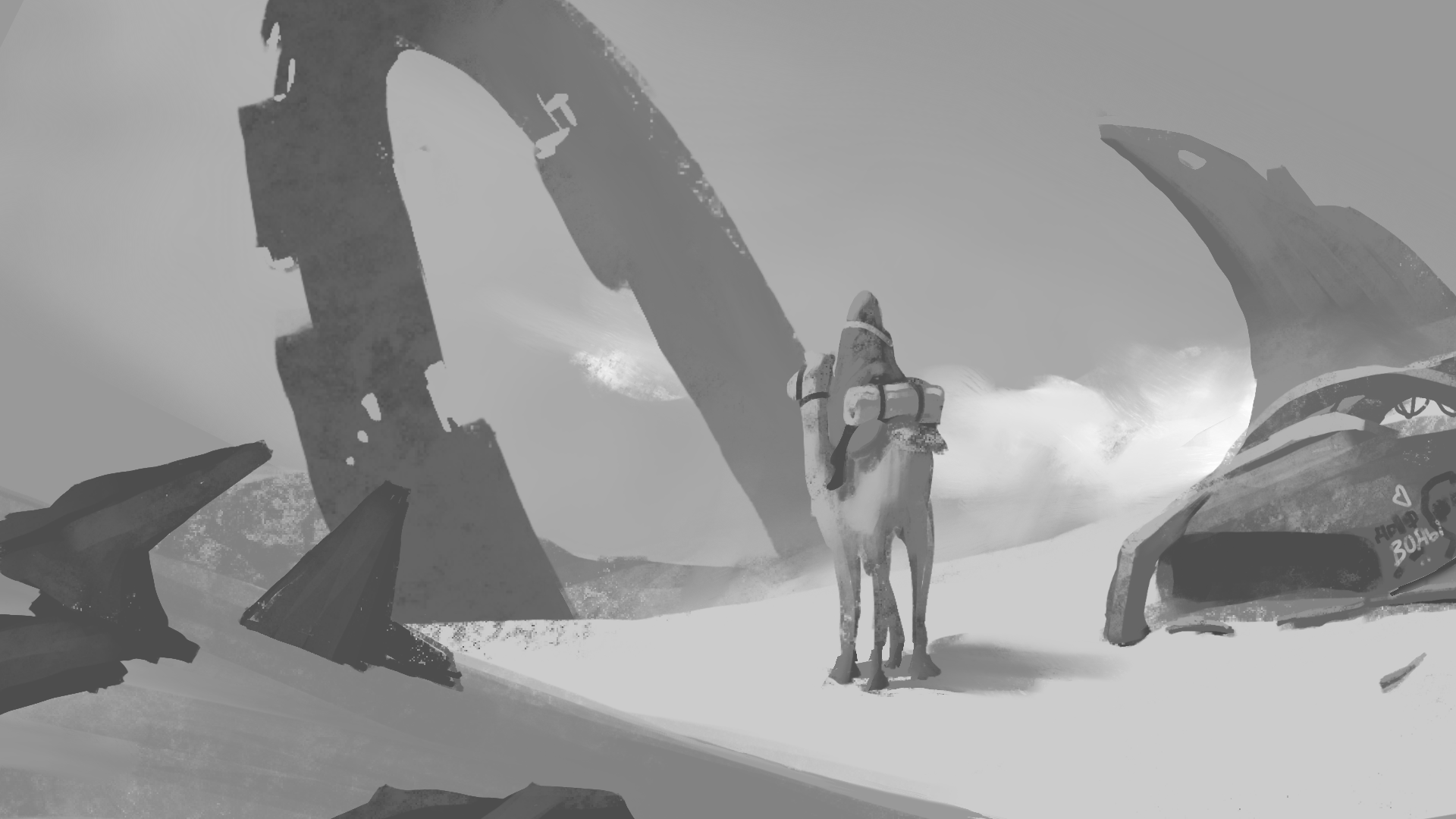 Environment Sketches for the Tian Gong Ruins, an ancient space station that had crashed into the Steppes along with other concept paintings for the Steppe.